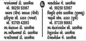Obituary Of Harshal Jashvantbhai Barbhaiya