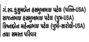 Obituary Of Hasmukhbhai Bhulabhai Patel