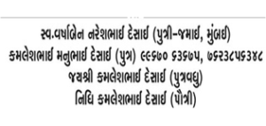 Obituary Of Kusumben Manubhai Desai