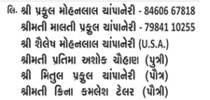 Obituary Of Mohanlal Sukhabhai Champaneri