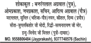 Obituary Of Mohanlalji Ramvilasji Agrawal