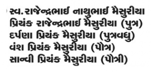 Late Pragyaben Rajendrabhai Maisuriya