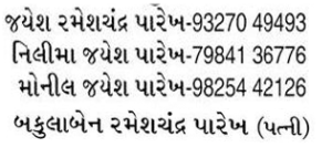 Obituary Of Rameshchnadra Veerchand Parikh