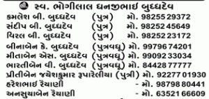 Late Shobhnaben Bhogilal Buddhadev
