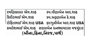Obituary Of Vasantiben Bhagvandas Shah